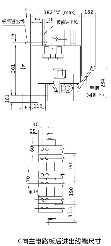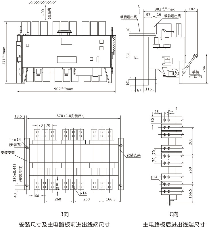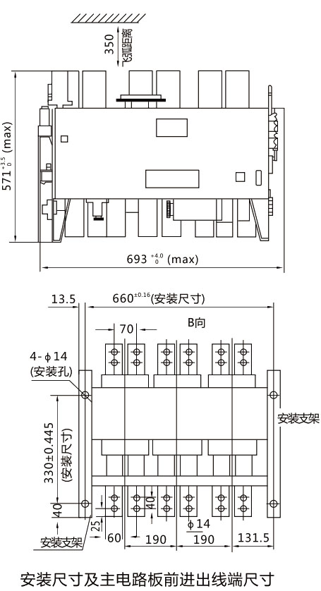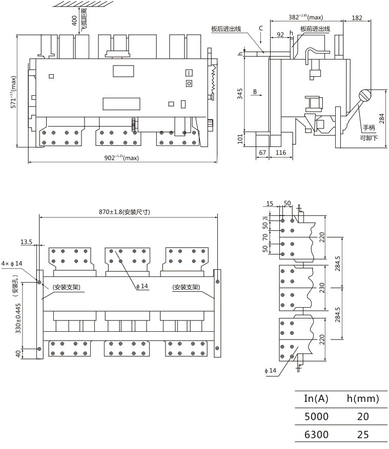 DW15-4000断路器外形尺寸及安装尺寸