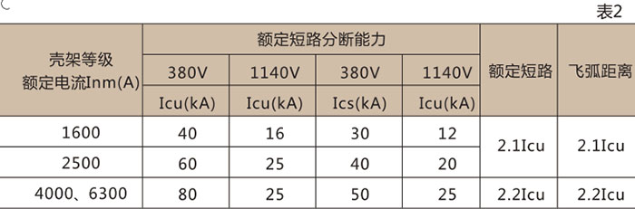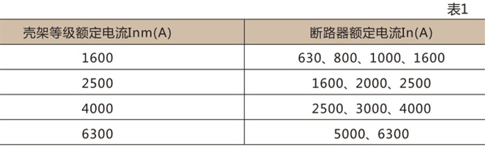 注:只具有瞬时过电流脱扣器的断路器,并仅作过载保护。In=5000、6300A 只有电磁式,其余均有电磁式和热电磁式两种。