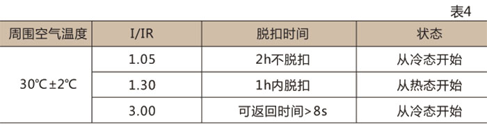 长延时过电流脱扣器各极同时通电时的动作特性见表4