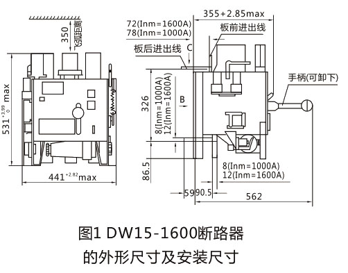 ● DW15-1600断路器外形尺寸及安装尺寸