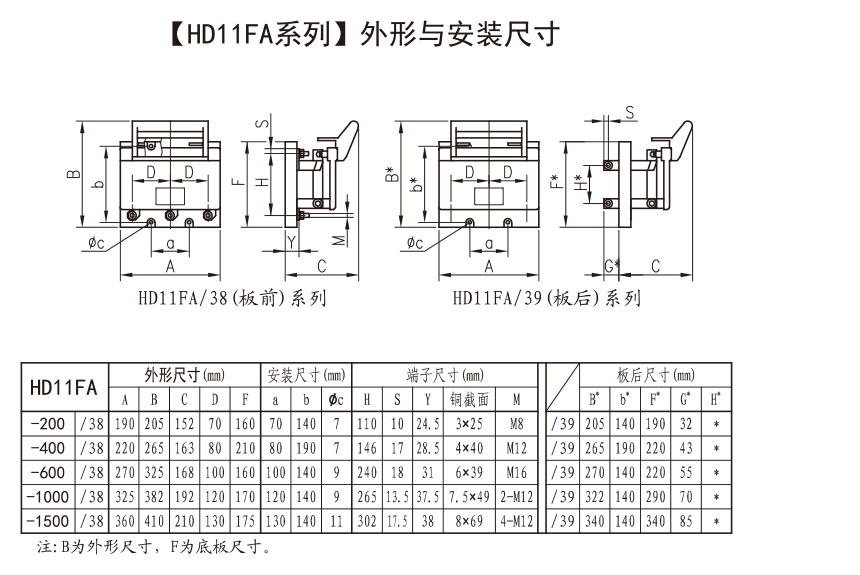 ● 中央正面杠杆传动式的刀开关,为了便于开关板的设计和安装,从200-4000A的纵向安装尺寸皆相同。