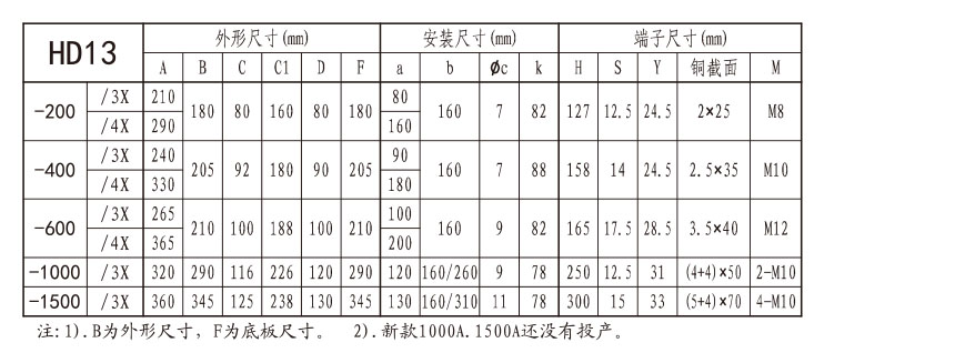 常规型号有:HD13BX-600/31,HD13BX-1000/31,HD13BX-1500/31