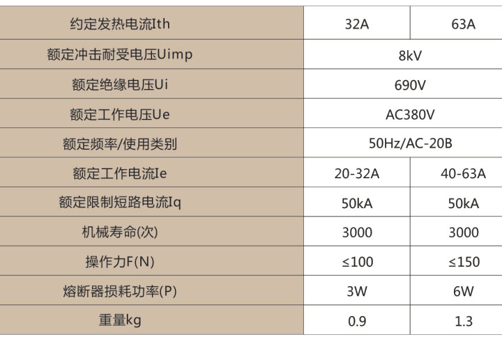 注:当隔离器用于电动机电路时,允许熔断体的额定电流大于隔离器的额定工作电流。