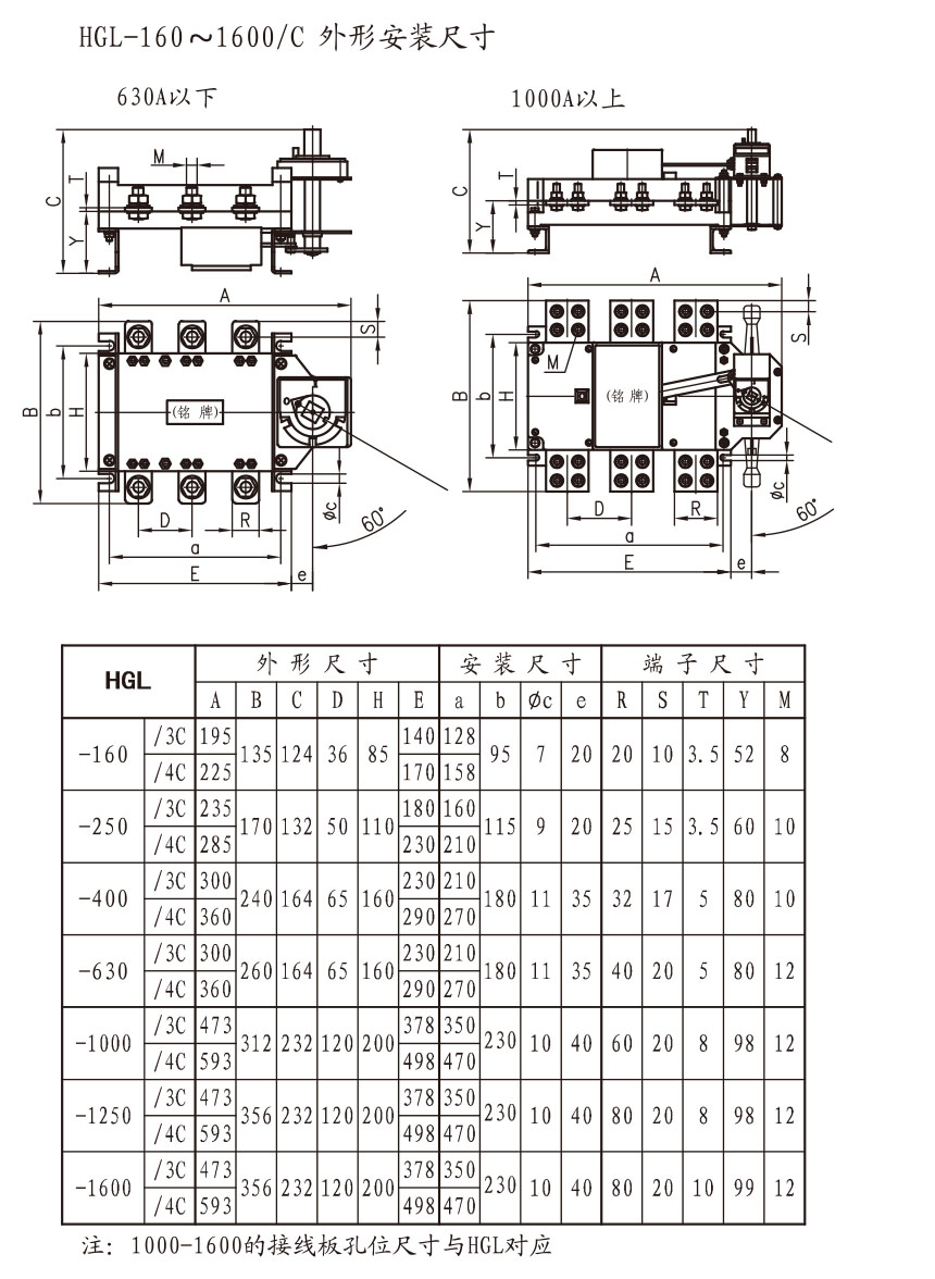 常规型号:HGLC-160/3,HGLC-250/3,HGLC-400/3,HGLC-630/3