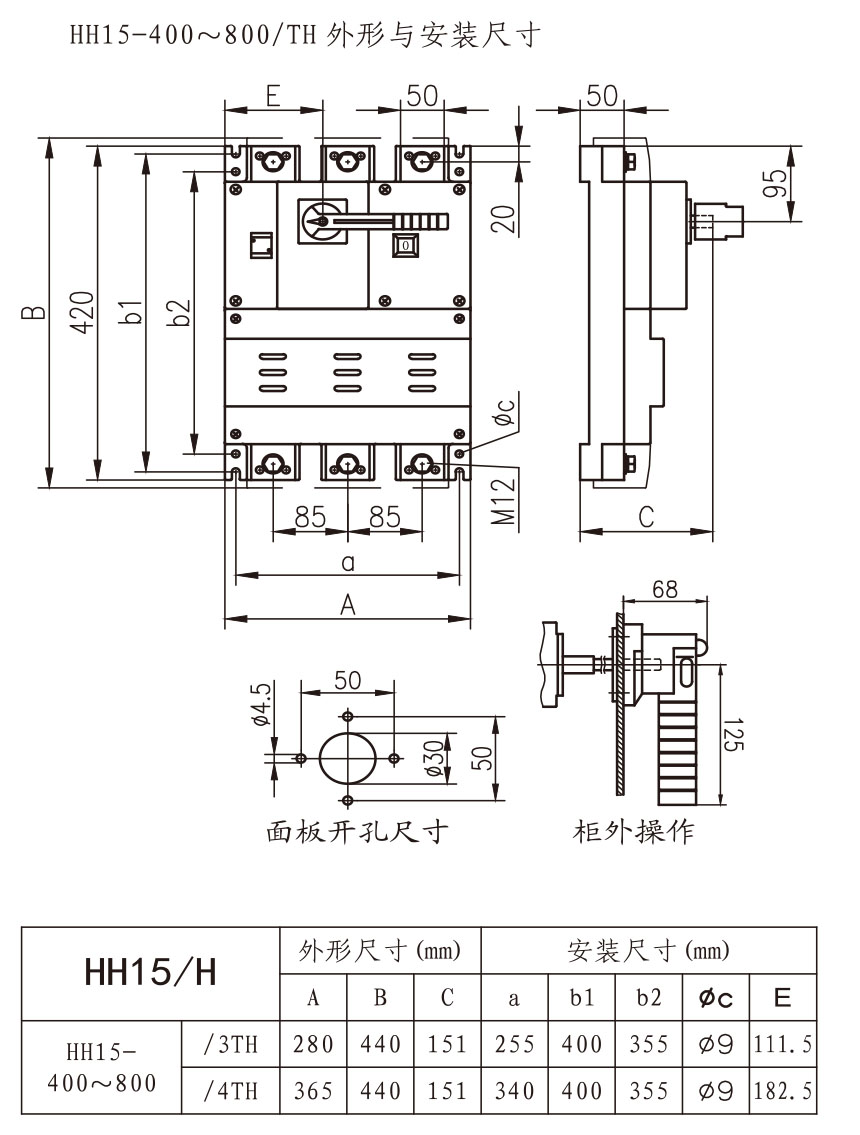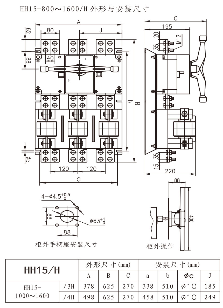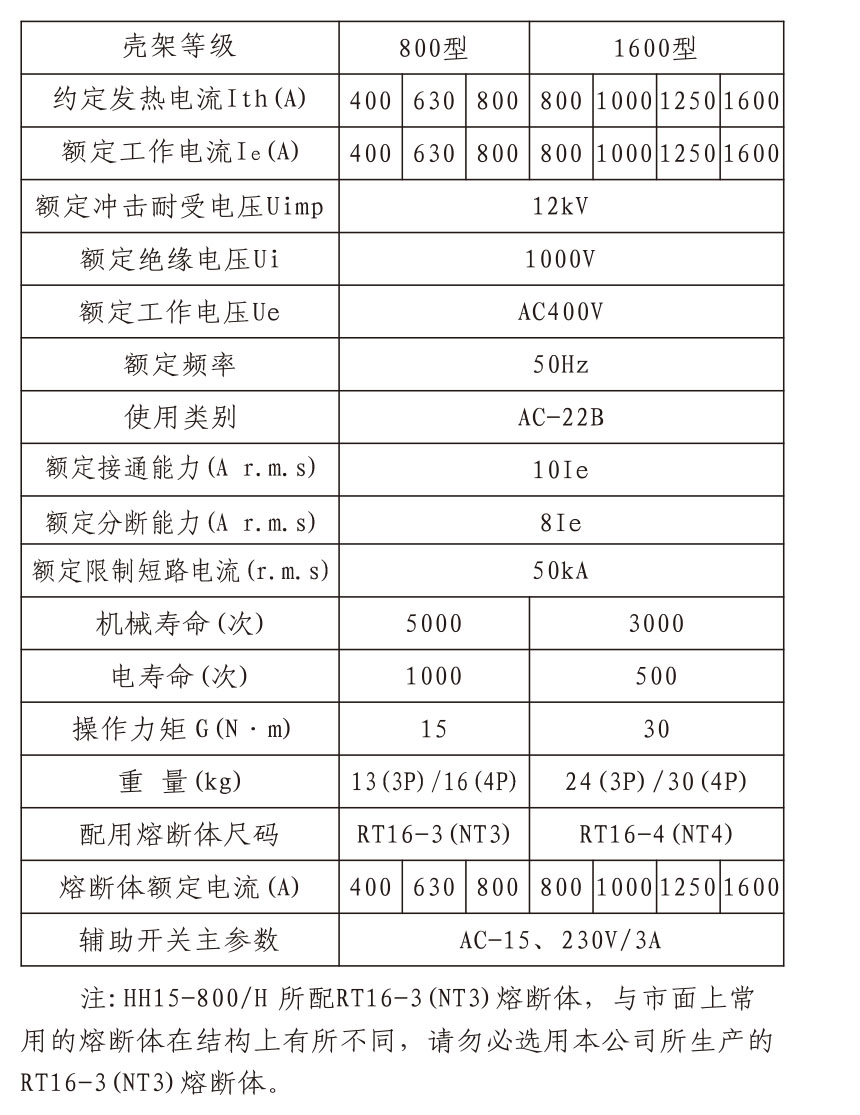 HH15/H系列(原HGL/R系列)隔离开关熔断器组,适应于交流50Hz、额定电压400V、约定发热电流为400-800A(800型)、800-1600A(1600型)的工企业配电系统中,用作手动不频繁操作的电源开关、隔离开关和应急开关,并作为电路短路保护之用。