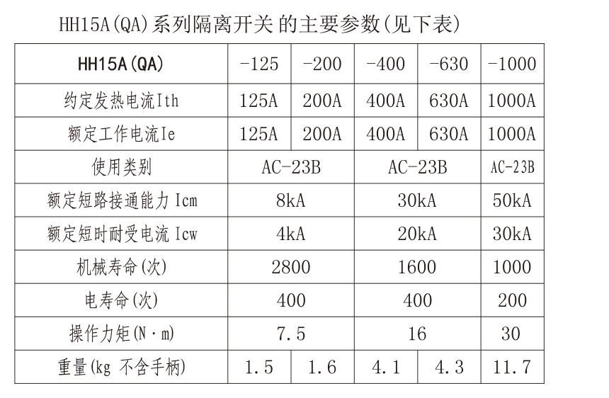 常规型号:HH15A(QA)-400/3,HH15A(QA)-630/3,HH15A(QA)-1000/3