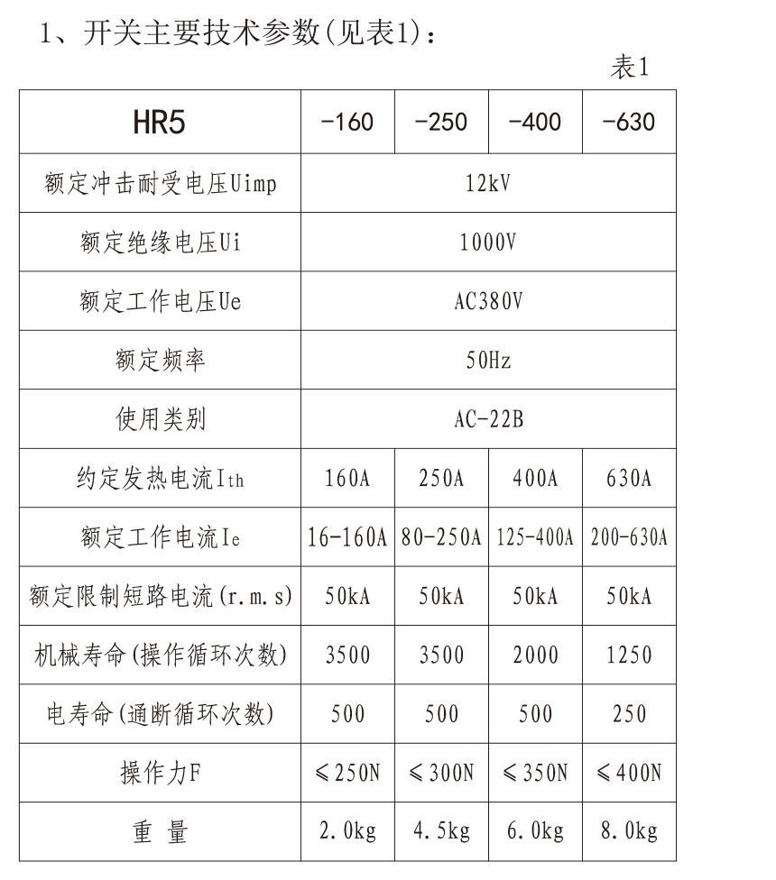 HR5系列熔断器式隔离开关(以下简称开关),适用于交流50Hz、额定电压380V、约定发热电流至630A的具有高短路电流的配电电路和电动机电路中,用作手动不频繁操作的电源开关、隔离开关和应急开关,并作为电路短路保护之用,但一般不作为直接开闭单台电动机之用。
