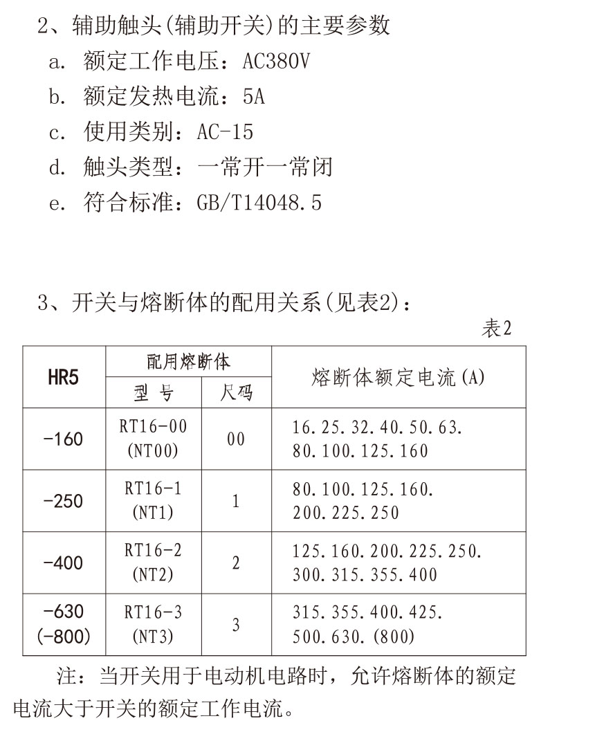 开关底座的左右两侧可装辅助触头,用来指示开关的通断状态。开关上盖中可装熔断指示,当熔断体熔断时指示灯亮,可作缺相检测保护之用。