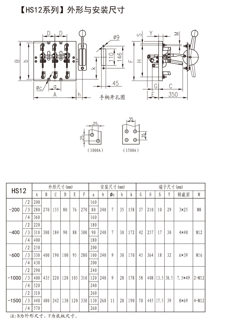 HD12、HS12系列侧方正面杠杆操作机构式刀开关关主要用于正面操作、前面维修的开关柜中,操作机构装在开关柜的两侧。