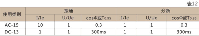 ● 辅助触头正常条件下的接通与分段能力见表12
