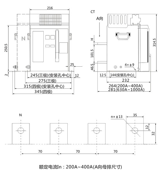 ● 断路器的额定绝缘电压1000V;额定工作电压400V、690V。