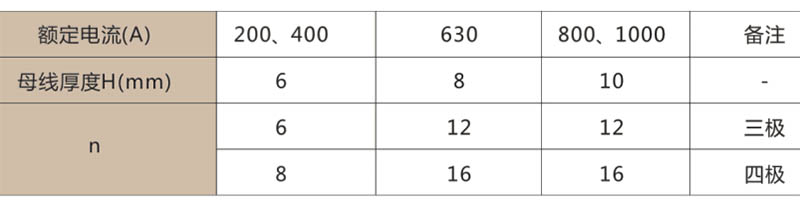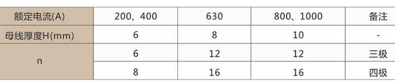 ● 断路器的额定电流见表1