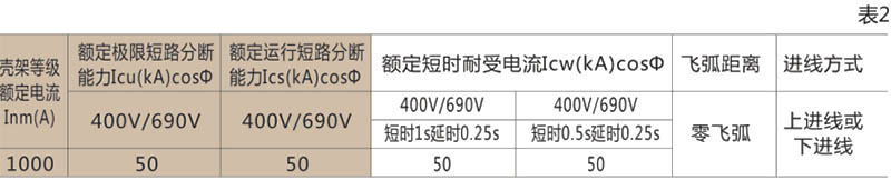 ● 断路器的额定短路分断能力及短时耐受电流见表2