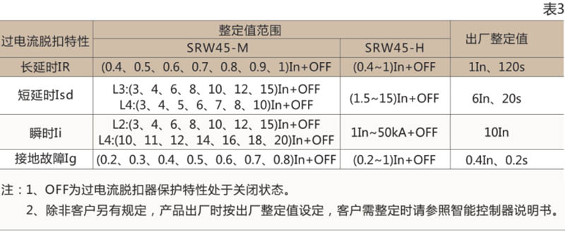 ● 智能控制器的整定值及误差见表3