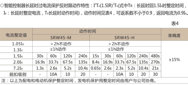● 智能控制器短延时过电流保护特性为定时限特性,其延时时间为0.2s(L型控制器)、04s,可返回时间为0.21s,其时限误差为±10%。