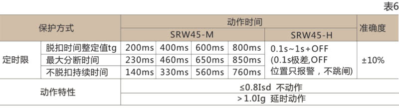 ● 接地故障保护动作特性为定时限,其延时特性符合表5,其时限误差为-15%