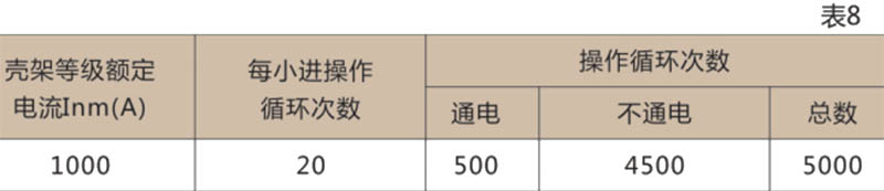 ● 断路器的操作循环次数见表8
